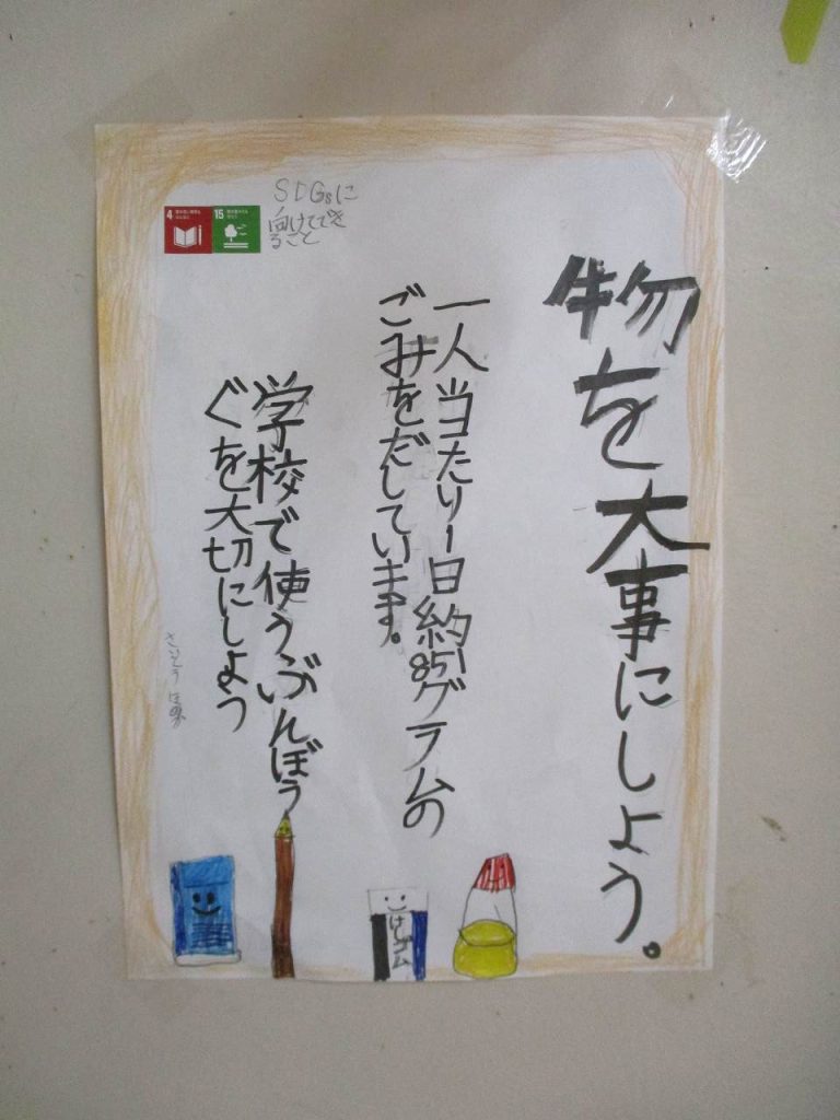 4年生が自然環境を守るためのポスターを作り、掲示してくれました。