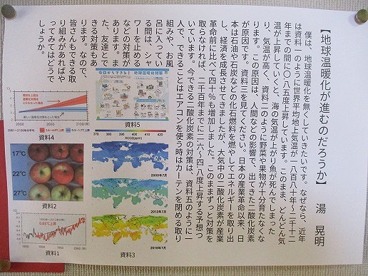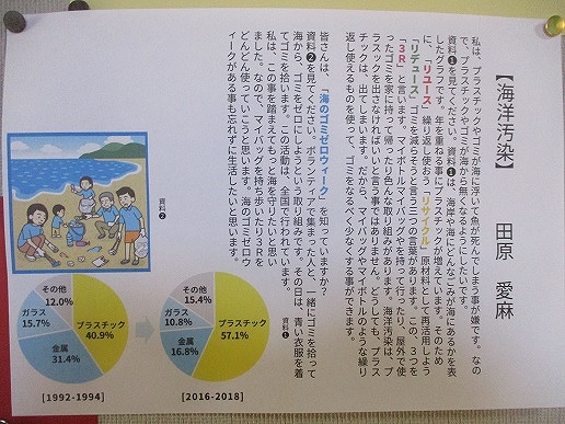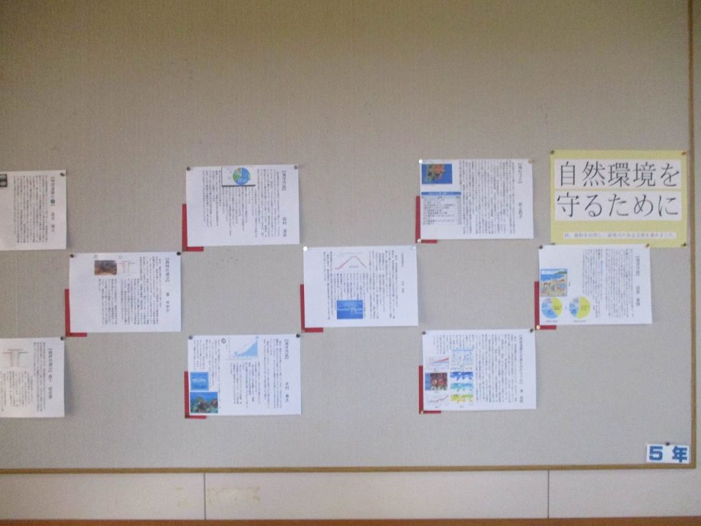 5年生は国語の学習をもとに、自然環境を守るためのレポートを掲示してくれています。
