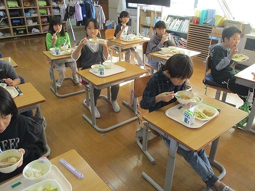 今日、各教室の様子を見に行くと、子どもたちは手際よく準備をして、「いただきます!」の声とともに食べていました。