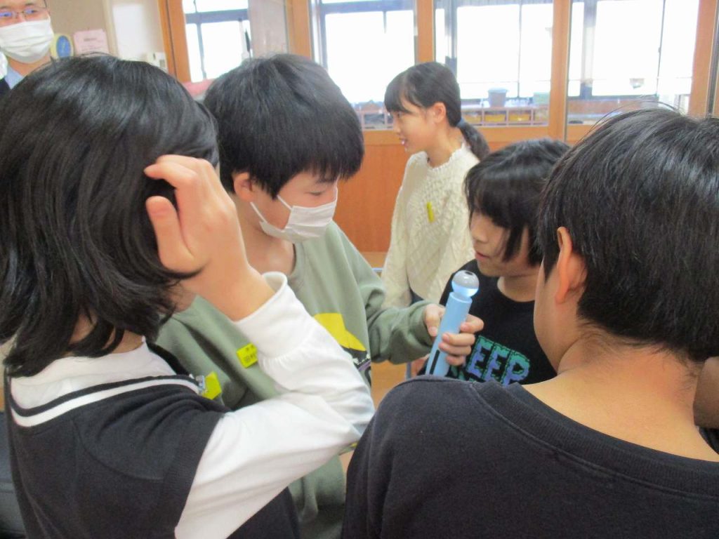 また、講師の方が持ってきた道具の中には、時刻や日にち、気温、湿度を音声で教えてくれる時計もあり、子どもたちは興味津々でした。