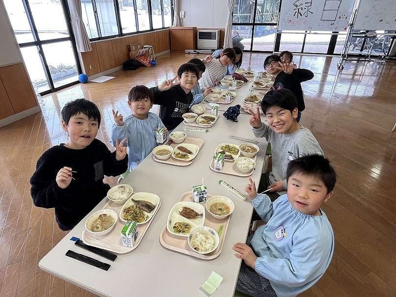 給食の時間には、5年生がテキパキと準備を進め、優しく話しかける姿が印象的でした。