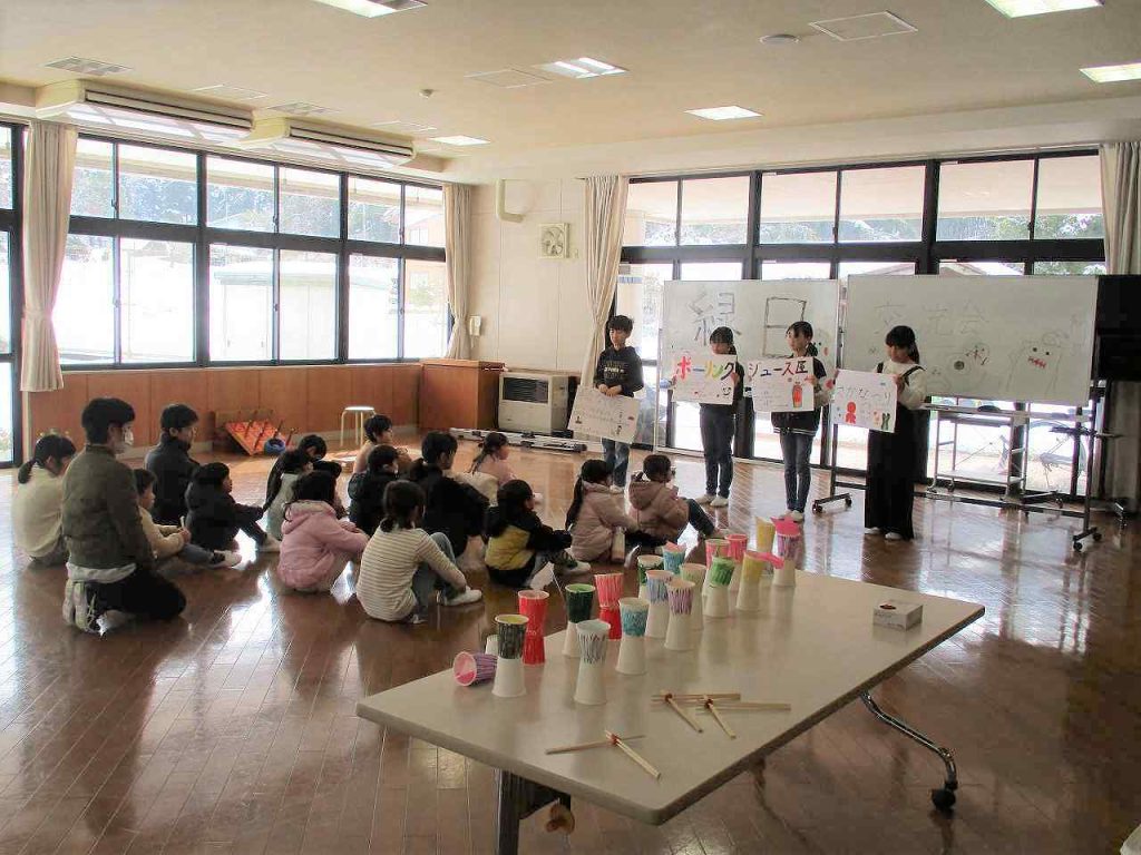今回は多目的ホールを舞台に、「縁日遊び」と「給食交流会」を実施。