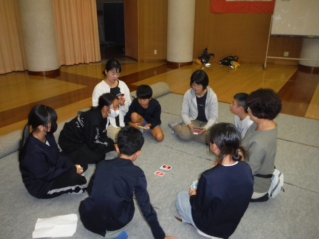 10月20日のクラブ活動では、地域の方々や保護者の皆様にもご参加いただき、交流を深める機会となりました。スポーツクラブでは、保護者の方々と一緒にチームに分かれてモルックに挑戦し、楽しい時間を過ごしました。ボードゲームクラブでは、UNOなどのカードゲームを保護者の方と一緒に楽しみ、和気あいあいとしたひとときとなりました。また、チャレンジクラブでは、新温泉町から講師の先生をお招きし、陶芸体験を行いました。参加者それぞれが思い思いの作品を作り、思い出に残る貴重な体験となりました。
