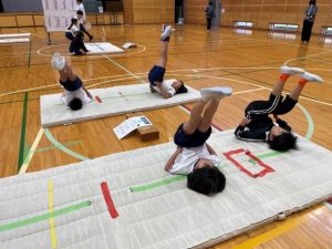 2年生では体育で「マットを使った運動あそび」として、体を支えたり、転がったり逆さになったりする動きを楽しんでいます。一人一人が〝回転戦隊マットマン〟として、自分にできることを増やせるようにがんばっています。この日はチー […]