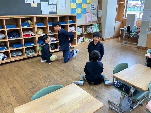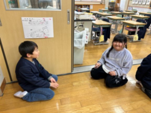 1月15日、縦割り班で「冬休みに楽しかったこと」をテーマに、第一回目のハッピートーク(対話によって友だちとのつながりを作る活動)を行いました。上級生と下級生が対話する中で、相手の話を最後まで聞き、質問や感想を伝える姿が見られました。学年をこえた温かいつながりが生まれ、安心して話し合える雰囲気づくりにつながりました。