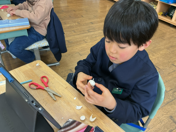 まゆ人形づくり(2/19)~2年生~ 2026年2月25日 最終更新日時 : 2026年2月25日 ooyaes 2月19日、2年生が、「かいこの里」のスタッフの方と一緒に、昨年度子どもたちが育てた繭を使って、繭人形を家族へのプレゼントとして作りました。どの作品も個性あふれる素敵な仕上がりとなりました。 かいこの里の人からの説明 Post Views: 62