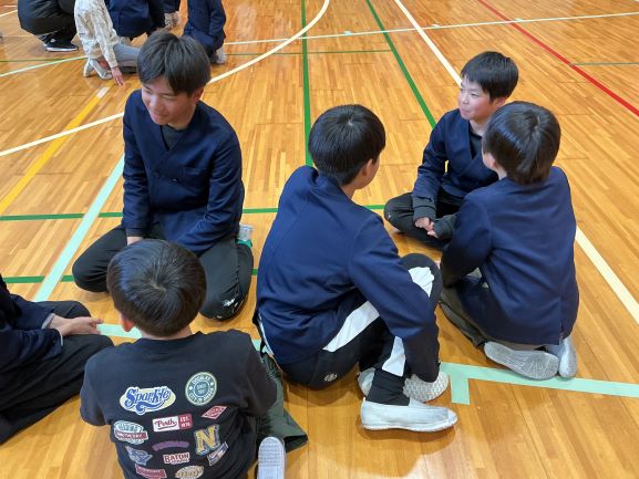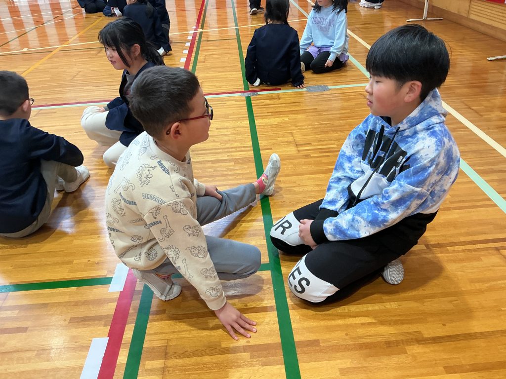 3月12日、対話活動の一環であるハッピートークを行いました。めあては、「対話を通して、今年度特にがんばったことを、異学年の友だちに伝えることができる」です。第3回目は、全校生で行いました。運動会やマラソン大会など、各学年、対話によって、交流することができました。最後に6年生から、在校生へ1年間の感謝の思いを在校生に伝えました。