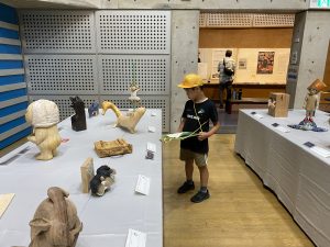 毎年大屋ホールで開催される「木彫フォークアートおおや」の観賞に3・4年生が行きました。出展された96作品をじっくり鑑賞し、自分のお気に入りの作品を探しました。 第31回公募展木彫フォークアートおおや審査結果/養父市