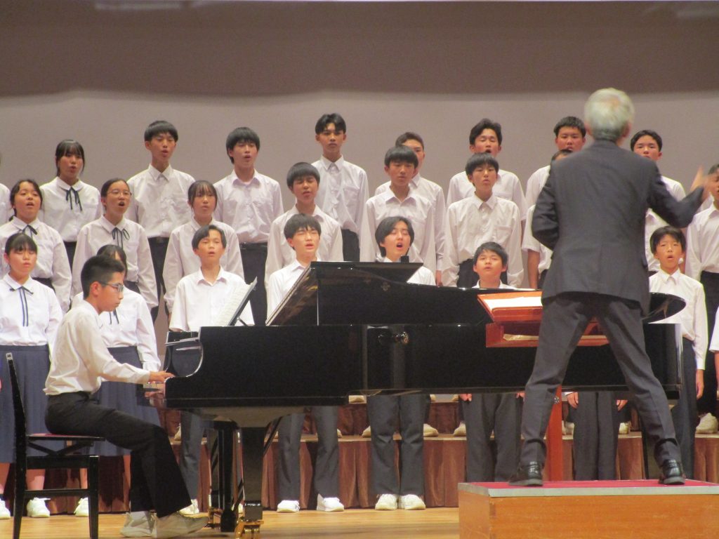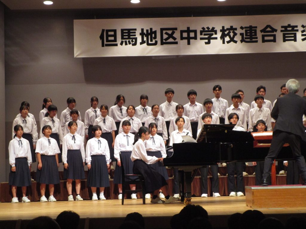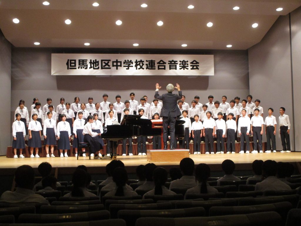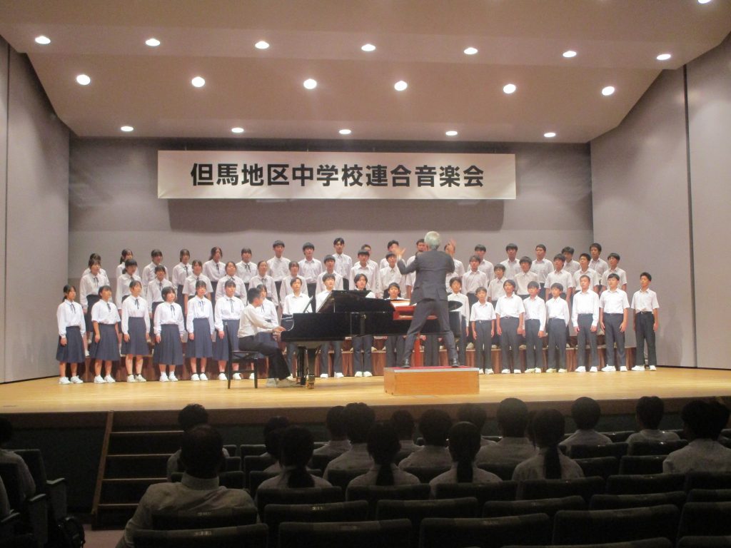 10月16日(木) 香住文化会館で開催された、但馬連合音楽祭に全校生で参加しました。但馬の各中学校の演奏や合唱をじっくり聞くことができました。大屋中は全校合唱として「群青」と「時代」の2曲を披露しました。短い練習期間でしたが、1年生から3年生まで一つになって素晴らしい歌声を届けてくれました。