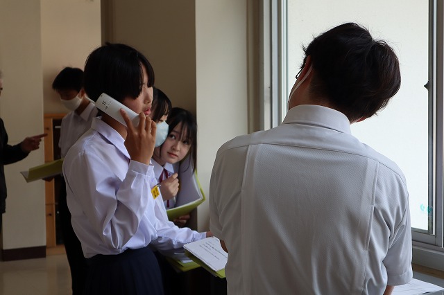 8年生は、来る6月2日(月)から始まる「トライやる・ウィーク」に向けて、準備を進めています。事業所への事前訪問を来週に控え、今日は訪問のアポイントを取るために、各事業所へ電話をかけました。どのように話すかをグループでシュミレーションし、ドキドキして電話をしました。緊張した表情ですが、キリッとお話ししている姿を見て、これも社会勉強だと感じます。