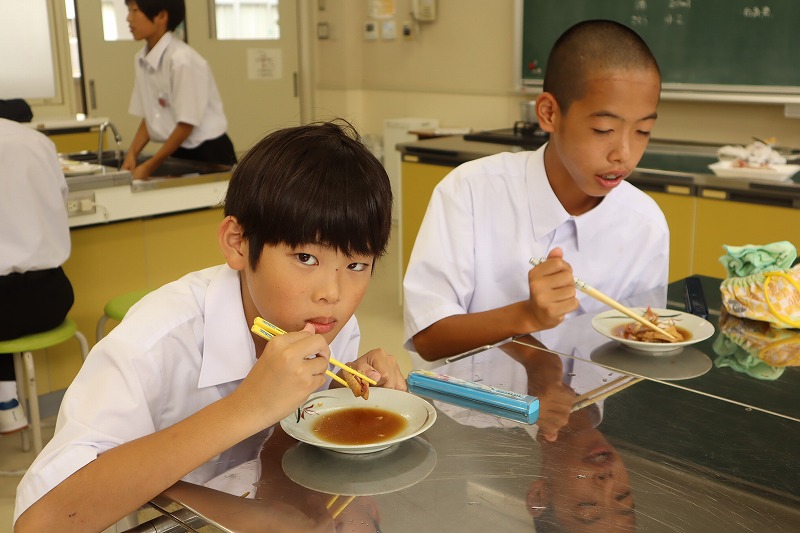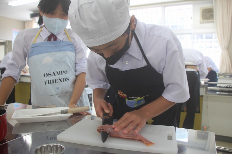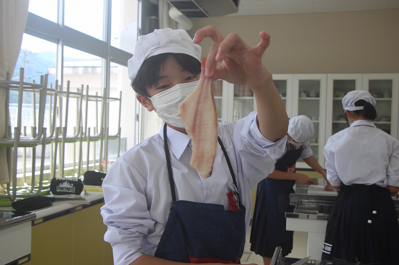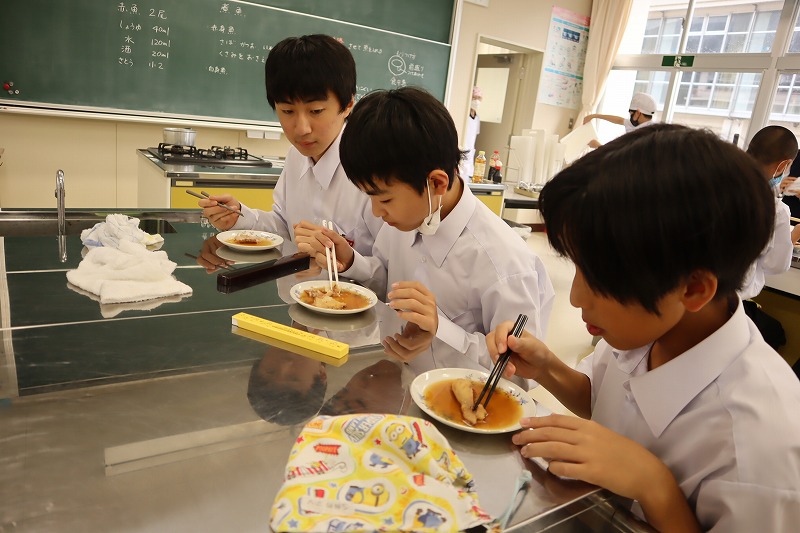 7年生は「魚の調理」について学習しています。3日(金)は「あかうお」を実際に調理することに挑戦しました。始めに3枚におろす練習をすると、次第に手つきも慣れて、上手においしく煮付けを作ることができました。家でも是非作ってみてほしいです。