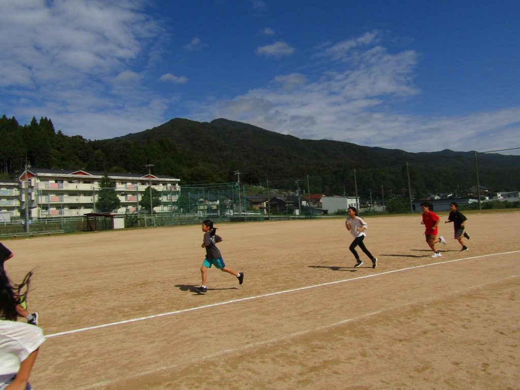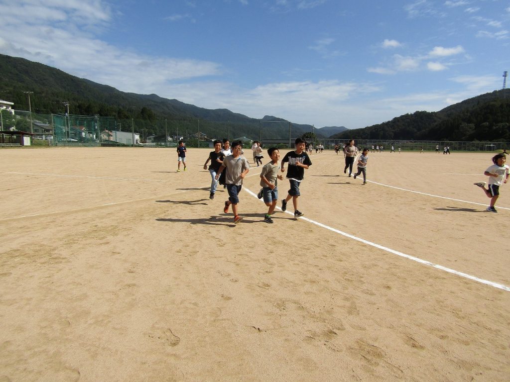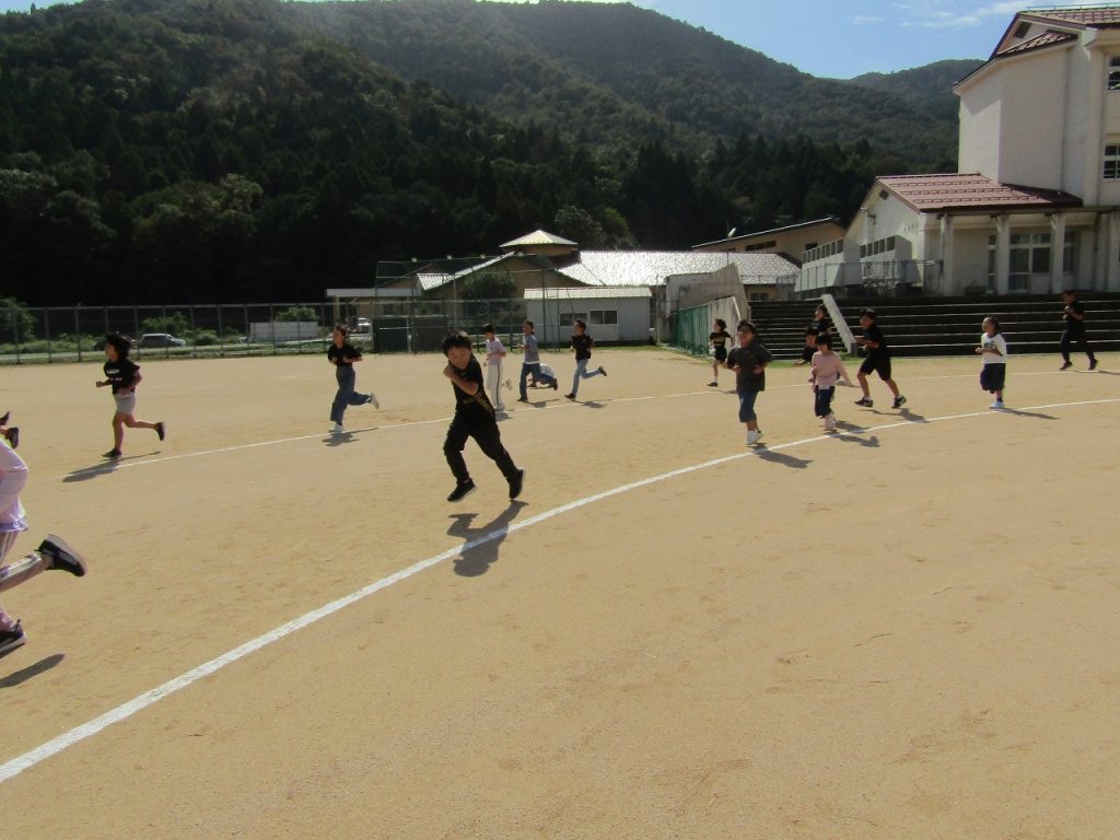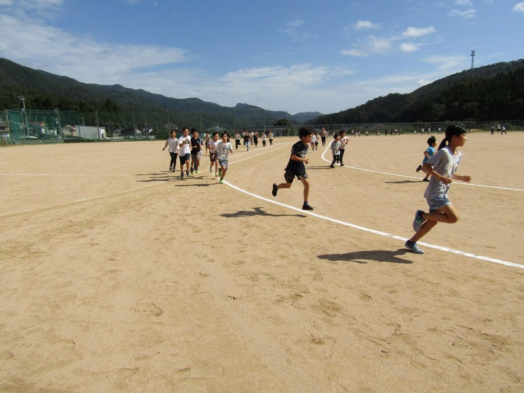 9月29日(月)から10月7日(火)まで2校時と3校時の間の休み時間(15分間)に、業間マラソンをしています。業間マラソンとは前期課程の全児童が10月8日(水)のマラソン大会に向けてグラウンドを走って練習をする時間です。業間マラソンをしているときは、テンポの良い曲を流しています。児童も教師も曲に合わしてしっかり走りました。業間マラソン後は「今日は3周走った」「いつもよりたくさん走れた」「○○さんより多く走れた」など前向きな言葉がよく聞こえてきます。明日のマラソン大会は自己ベスト更新を目指して、頑張ってほしいと思います。