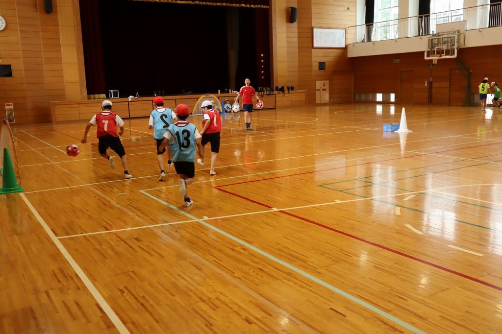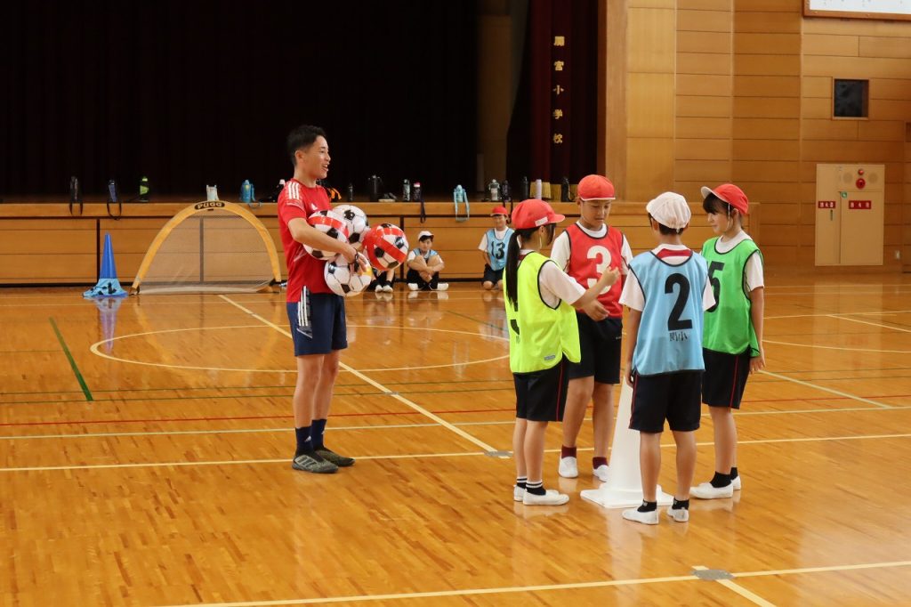 3校時は6年生、4校時は5年生の体育の時間に兵庫県体力アップサポーター派遣事業の第1回目の公開授業(サッカー)が行われました。体力アップサポーターの専門的な指導委員としてFSMDの田中啓介氏に来ていただきました。風船を使ったウォーミングアップや試合をしたりしました。田中先生は子どもたちに楽しくサッカーを教えてくださり、子どもたちは大喜びでした。あと2回来ていただきます。次は11月5日です。田中先生、よろしくお願いします。