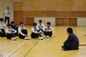 2校時に、養父市健康福祉部の方をお招きし、高齢者福祉について考えました。福祉政策や地域の関わりの仕方についてゲームを用いてシミュレーションしながら楽しく学ぶことができました。グループでどのような働きかけができるかを考察し、アイデアを出し合って問題解決を行う学習でした。市の福祉部の方にアドバイスをいただきながら進めていきました。