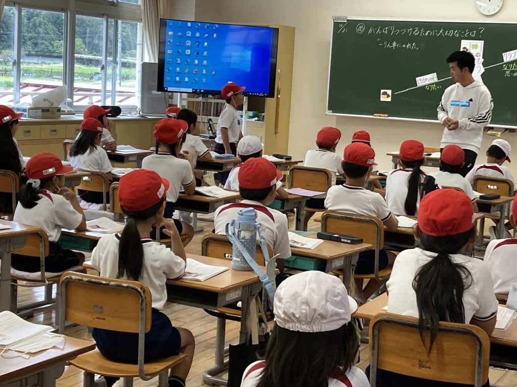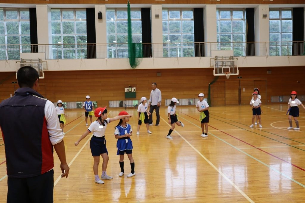 大屋小学校の3年生(16名)4年生(8名)が関宮学園に来て交流授業を行いました。2校時(3年生体育、4年生国語)、3校時(3年生道徳、4年生体育)の授業を一緒に行いました。いつもより人数が増えいろいろな考えに触れることができました。また、子どもたちの笑顔も見られ、一緒に授業を楽しむことができました。