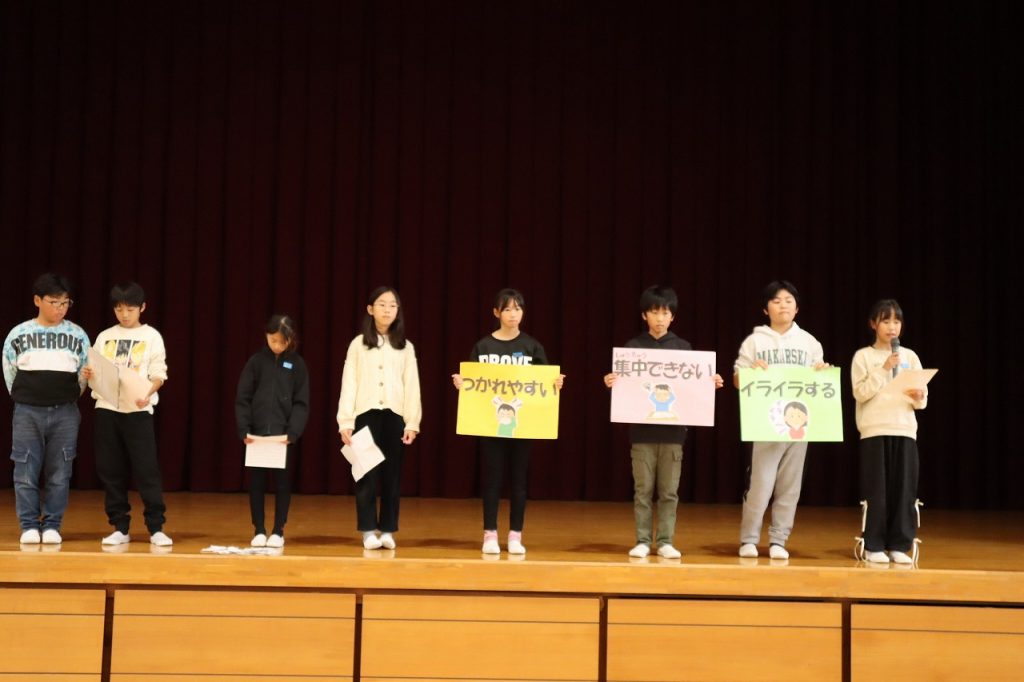 今回のユーユータイムは衛生部企画「睡眠カード探し」を縦割り班で行いました。校内に隠してある「良い睡眠について書いてあるカード」をどの班が多く見つけられるかという校内探検ゲームをしました。良い睡眠ができないと「疲れやすい」「集中できない」「イライラする」など身体に影響します。来週から「ねるねるウィーク」が始まります。体も心も元気に生活が送れるよう、良い睡眠に取り組んでいきます。