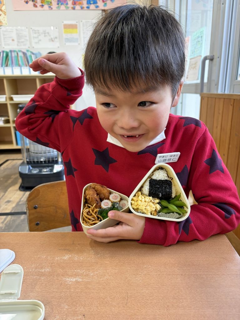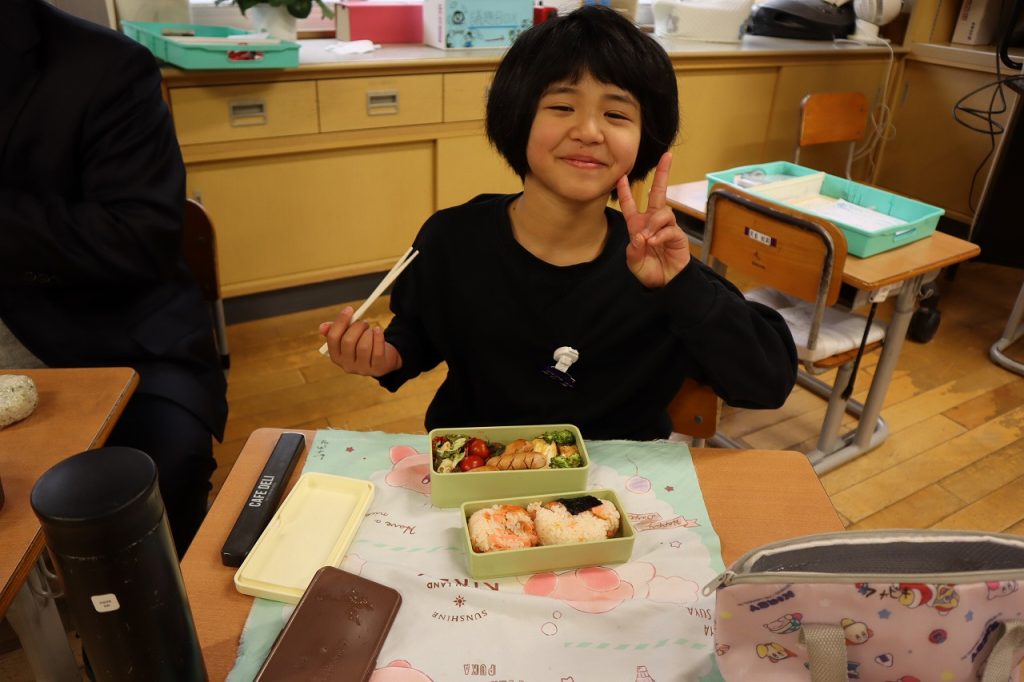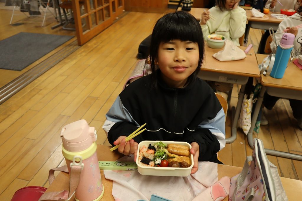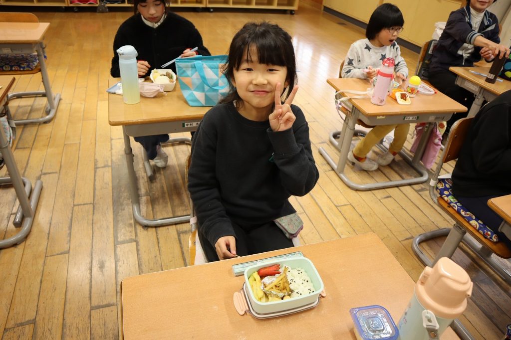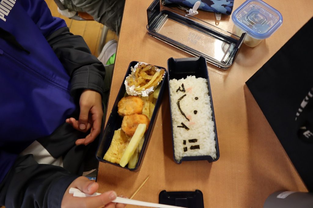 今日は手作り弁当日で児童生徒は自分で作った弁当を持って登校しました。弁当が楽しみだったのか3校時が始まる前からお弁当が食べたいという児童がいました。昼食時間に教室をのぞくとみんな嬉しそうにお弁当を食べていました。なんと、調理実習で習ったベーコン巻きやたこウィンナーなどが入っていて嬉しくなりました。お家の方のサポートもあり手作り弁当日が上手くいきました。ありがとうございました。