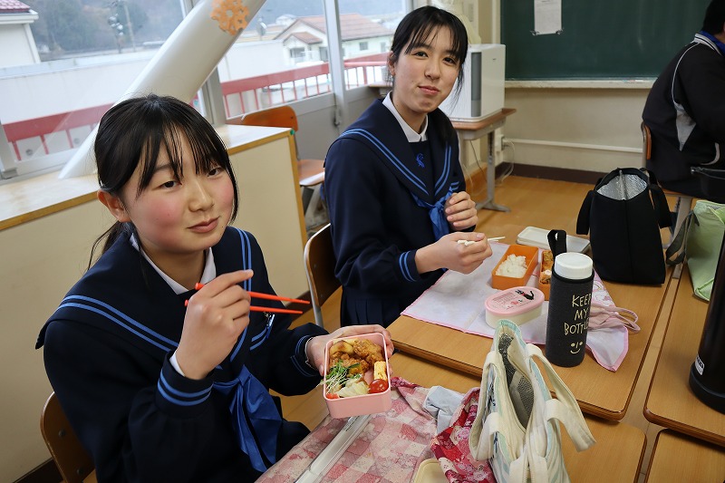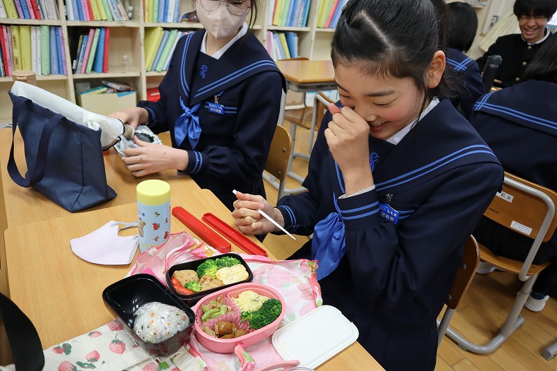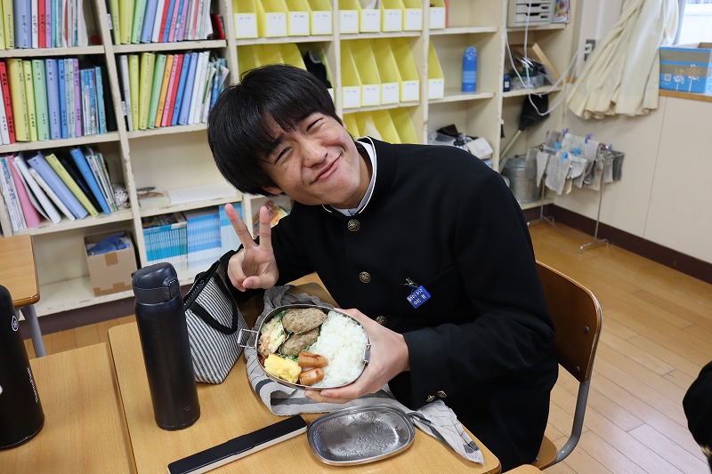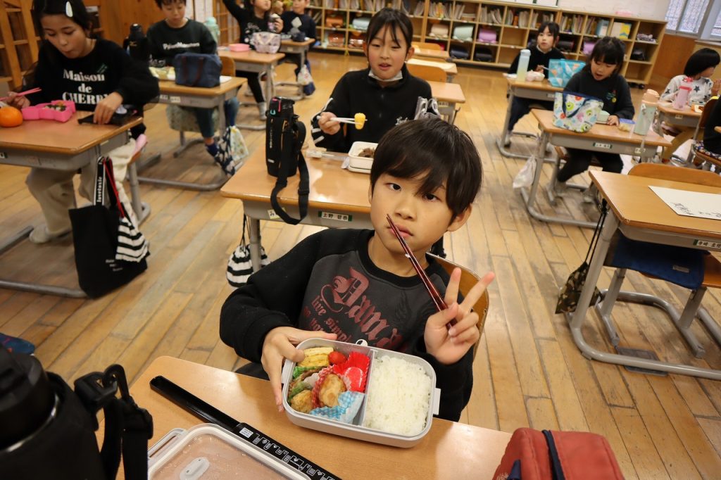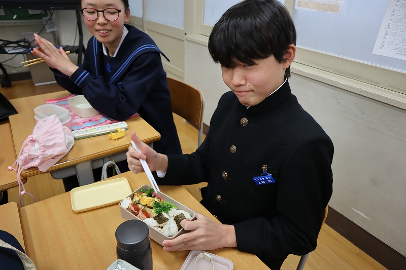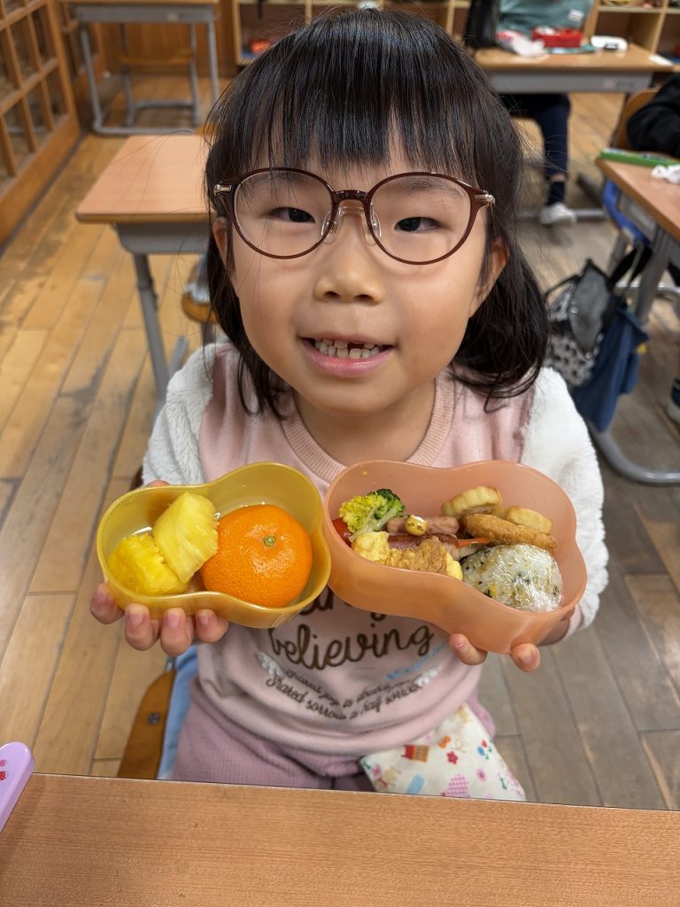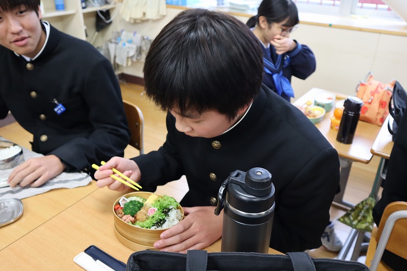 今日は手作り弁当日で児童生徒は自分で作った弁当を持って登校しました。弁当が楽しみだったのか3校時が始まる前からお弁当が食べたいという児童がいました。昼食時間に教室をのぞくとみんな嬉しそうにお弁当を食べていました。なんと、調理実習で習ったベーコン巻きやたこウィンナーなどが入っていて嬉しくなりました。お家の方のサポートもあり手作り弁当日が上手くいきました。ありがとうございました。