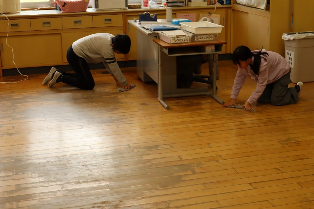 明日の2学期終業式の前に大掃除をしました。まず、クラスの机やイスのゴミ取りやロッカーの整理整頓などを行いました。その後、いつもの掃除場所で窓ガラスを拭いたり隅々まで丁寧に雑巾で拭いたり時間を掛けて丁寧に行いました。使ったところはきれいにすることが当たり前になっていて、どこもピカピカになりました。気持ちよく新年を迎えることができます。