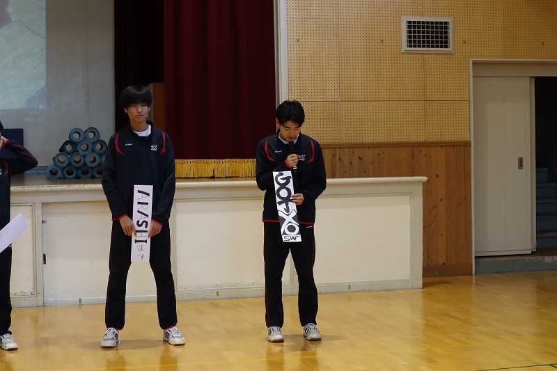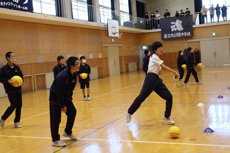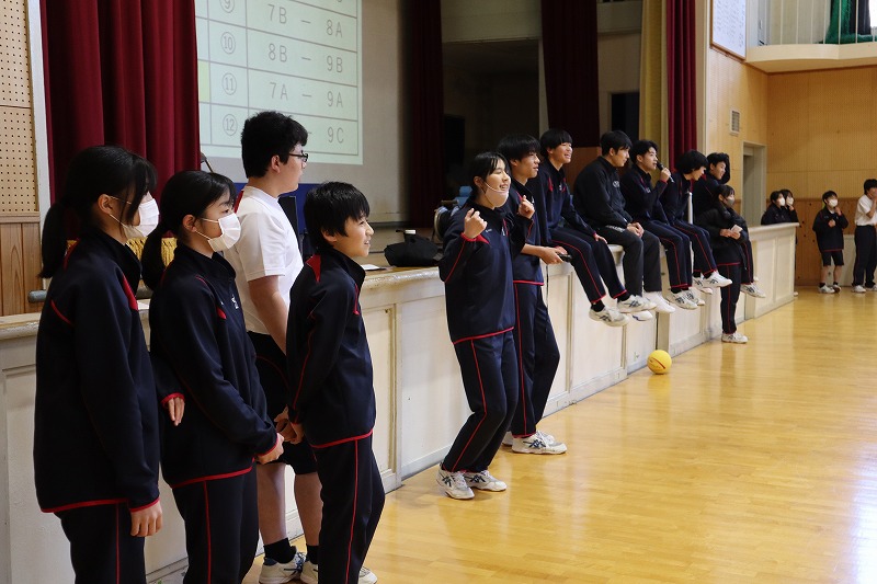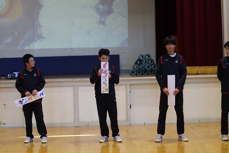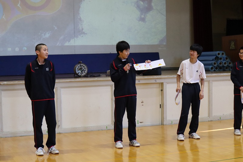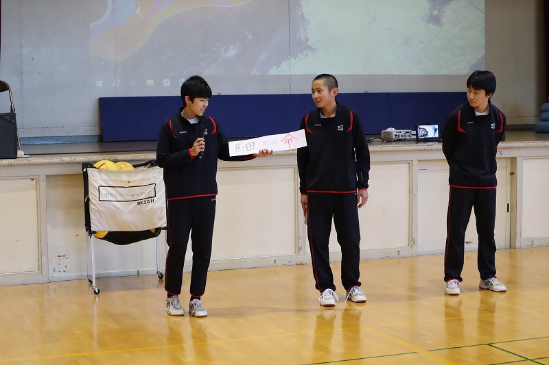 今年度の生徒会が企画した最後のイベントです。スーパードッヂボールで盛り上がりました。各学年でチームを作り、リーダーがチームの名前を発表した後、試合が始まりました。ボールの数やコートの大きさが時間で変わっていくなど普通のドッヂボールとは違うのですが、みんな楽しんで競技していました。