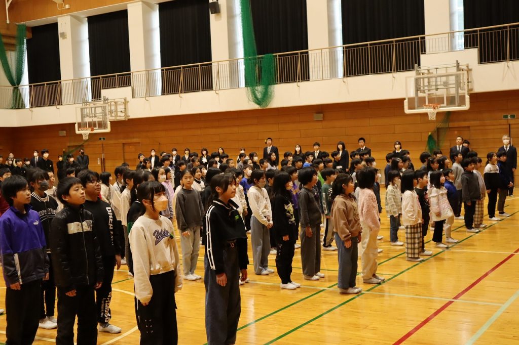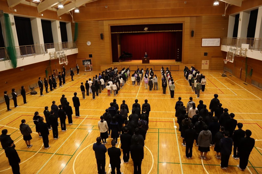 2学期の終業式では学校長が次の3つの話をされました。①命は一つ 自分を大切にしましょう。 ②「家族のために」を合言葉に、お手伝い大作戦にチャレンジをしましょう ③9年生へのメッセージで、自らの進路に向かって、「やりきる冬」にしましょう。「やりきる」と自信につながります。やりきって、多くの自信を積み重ねてください。 全校生は姿勢良く、しっかり話を聞いていました。前期後期の校歌もしっかり歌い2学期を締めくくりました。 今年もご支援ご協力いただいた皆様、大変お世話になり、ありがとうございました。よいお年をお迎えください。来年もよろしくお願いいたします。