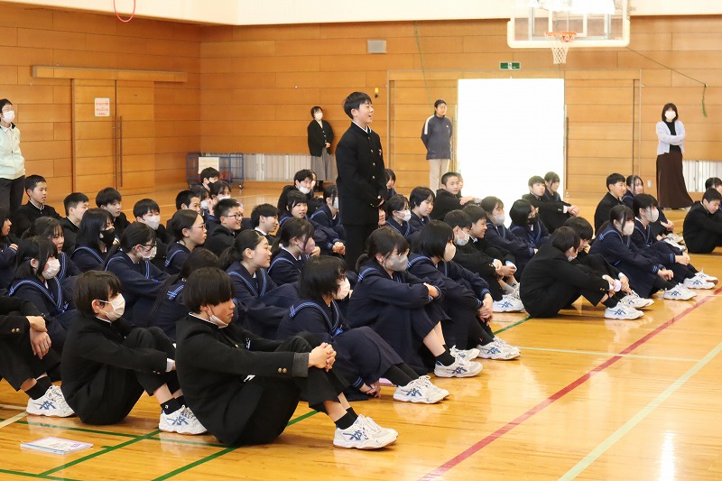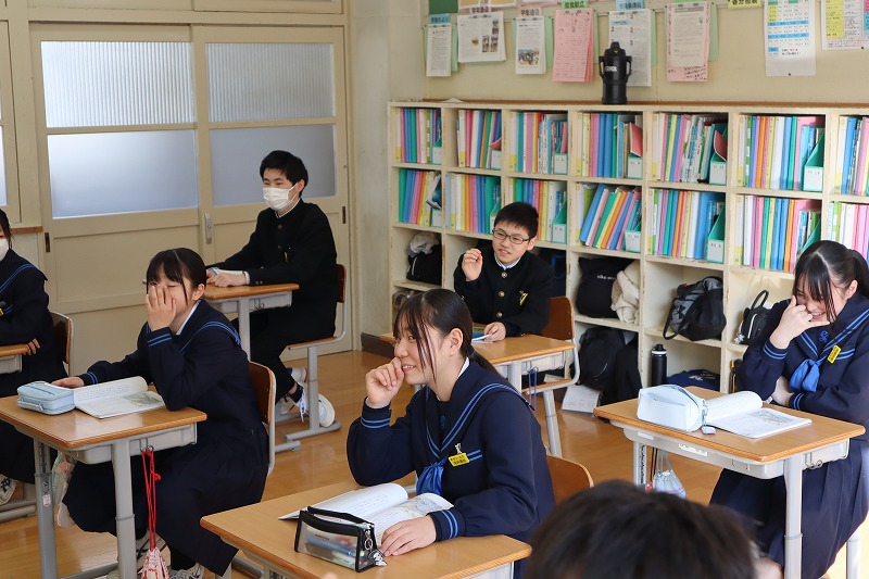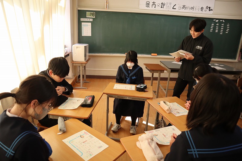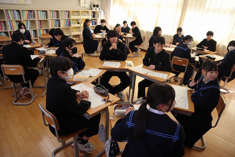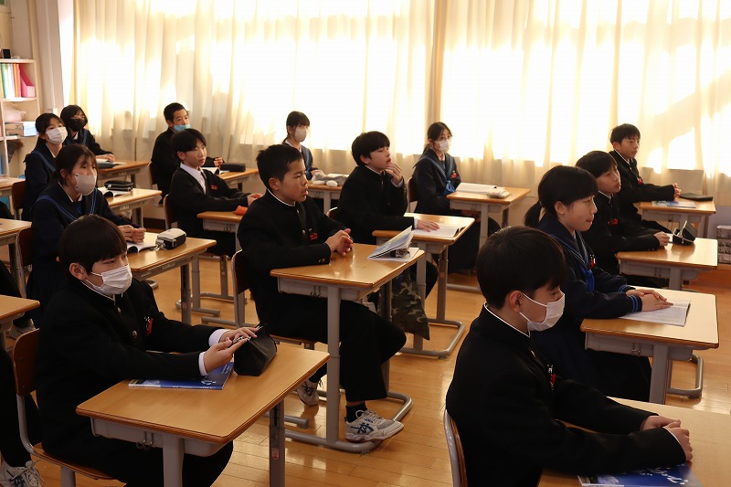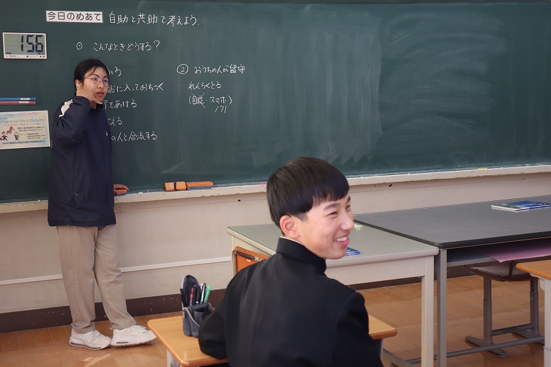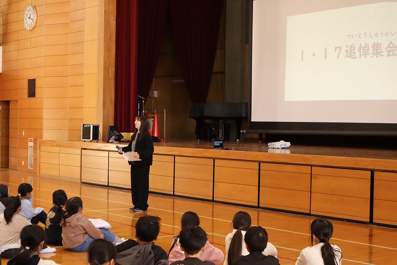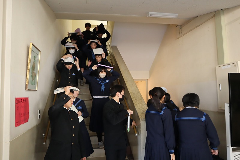 今回は昼休みに地震発生したことを想定した訓練を行いました。今までは、教室にみんなが揃っている状態で地震が発生する訓練でしたが、いつもと違う状況でも自分の安全を確保する行動ができました。1.17追悼集会では、兵庫県で起きた震災の教訓を生かし、まずは自分の身を守ることや周りの安全を確認すること、そして、助け合いの大切さを確認しました。その後の授業は、引き続き防災教育について考えを深めました。