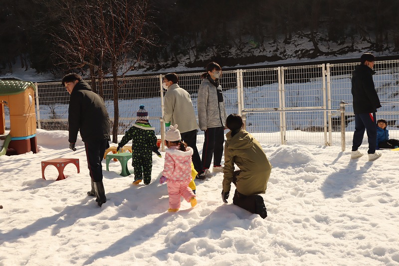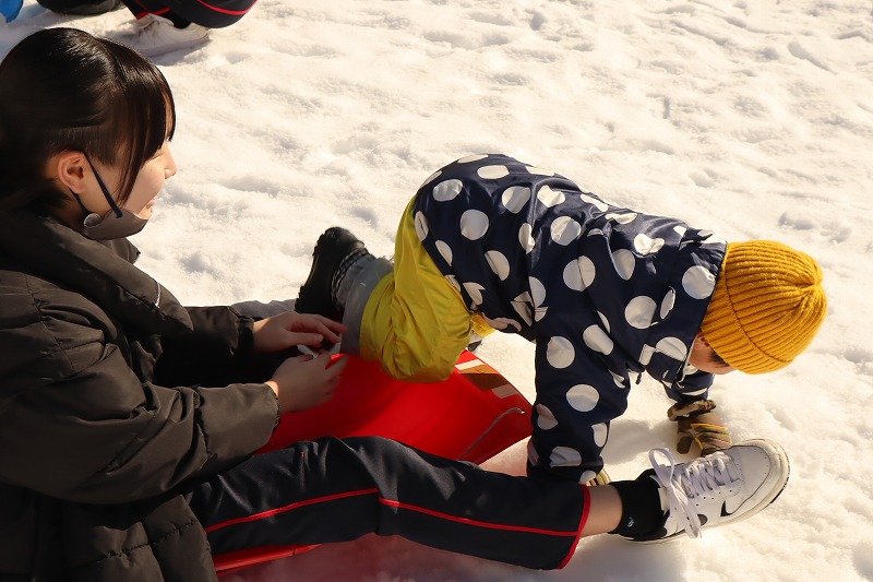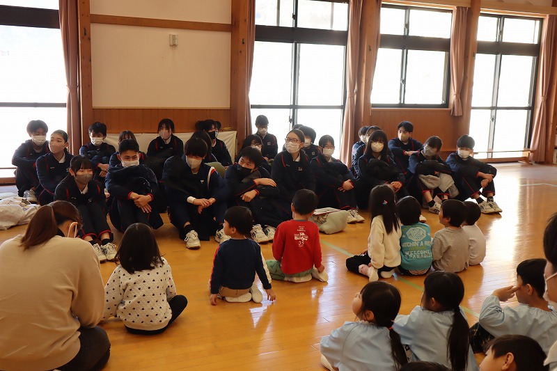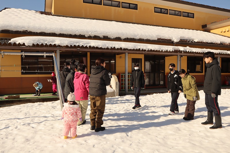 家庭科の保育分野の授業で、関宮こども園に訪問してきました。幼児との関わり方や今までの成長を感じることなどを目的として行いました。本を読んだり、園庭に積もったたくさんの雪で、雪遊びをしました。園児が分かるように言葉を選んだり目線を合わせたりしながら、上手に接することができました。関宮こども園にはとてもお世話になりました。ありがとうございました。