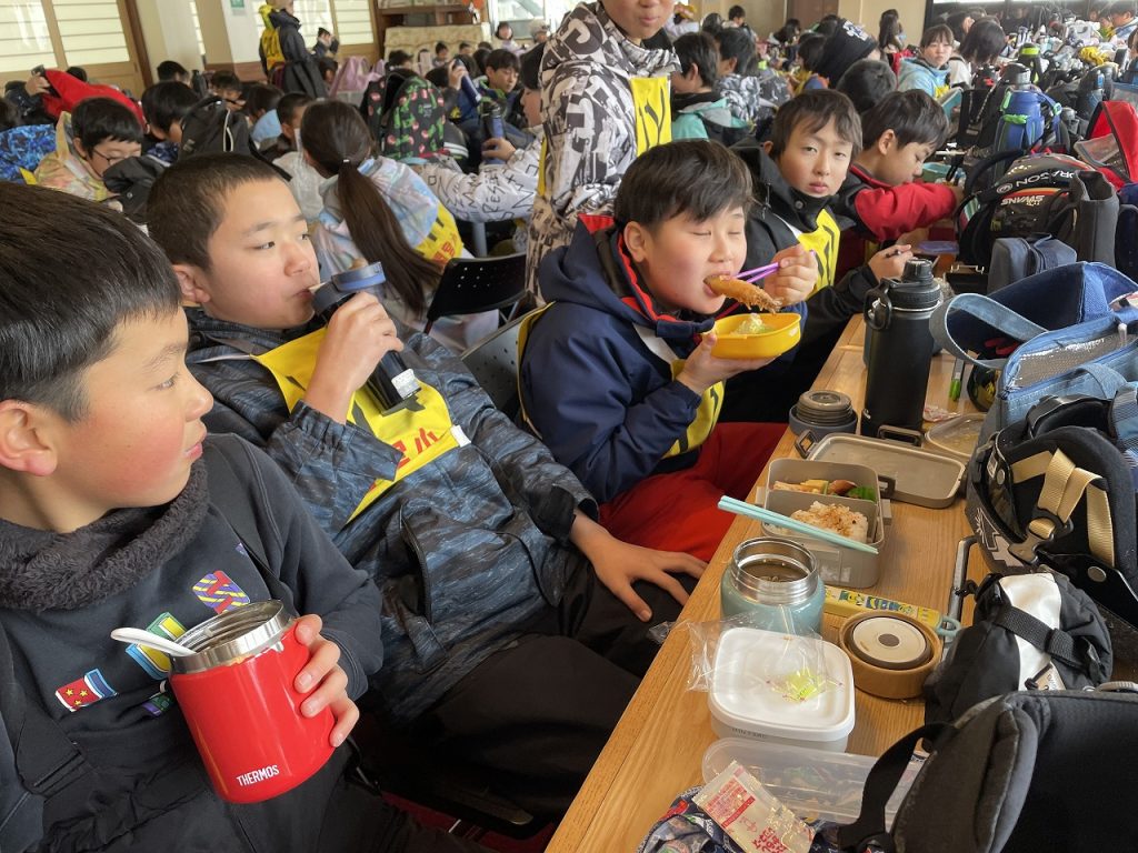 今日のスキー場は雪質や積雪量は良い状態で、おまけに天候にも恵まれ最高のスキー教室になりました。子どもたちや先生も絶好のコンディションにテンションが上がり、みんな気持ちよさそうにシュプールを描いていました。スキー教室を3回終えて子どもたちの技術は数段向上しました。また、仲間を気遣ったりスキー場関係者にあいさつがしっかりできたり行動面もレベルアップすることができました。校区内にスキー場があり3回もスキー教室を体験できることに感謝したいと思います。休憩所を提供していただいた谷常さん、インストラクターさん、保護者ボランティアさん、大変お世話になりました。ありがとうございました。