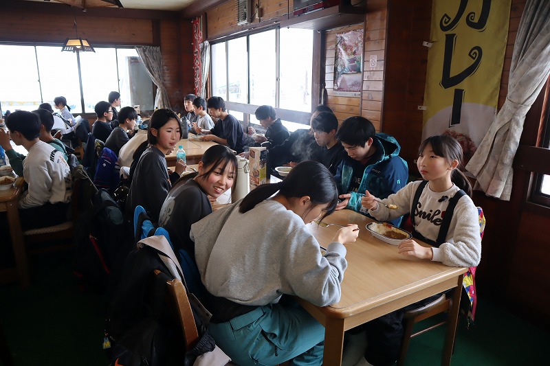 後期課程は、氷ノ山国際スキー場に行ってきました。コンディションがとても良い中で滑ることができました。生徒会三役が中心となって開校式や閉校式を運営し、環境部が率先して片付けや掃除を行うなど、7,8年生の力が発揮できた行事となりました。ロッジでは、ゆっくり座って温かいカレーをいただき、何杯もおかわりしている生徒が多数いました。保護者ボランティアの方にもお世話になりました。ありがとうございました。