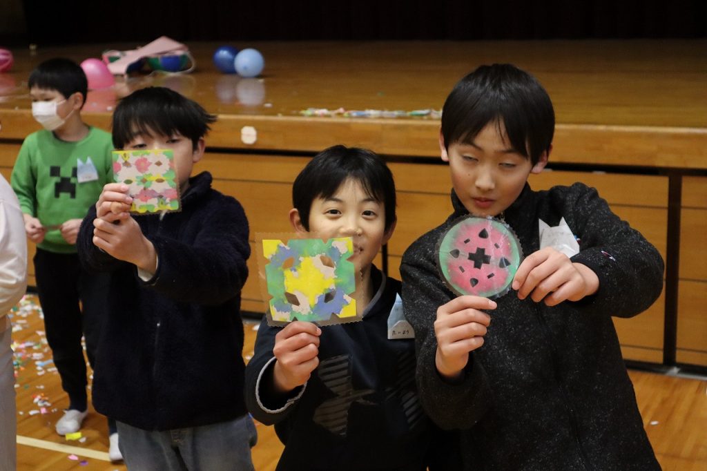 第3回の5歳児と5年生の交流会(5・5交流会)が行われました。前回から進め方や5歳への接し方などレベルアップし、5歳児も笑顔で過ごしていました。催し物は毎回違う内容で5歳児に分かりやすく楽しめるように考えられていて感心しました。最後に5歳児から5年生に交流会のお礼に手作りコースターをもらいました。嬉しかったため5年生は給食の牛乳でコースターを使っていました。