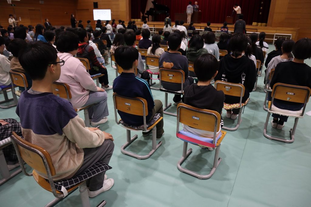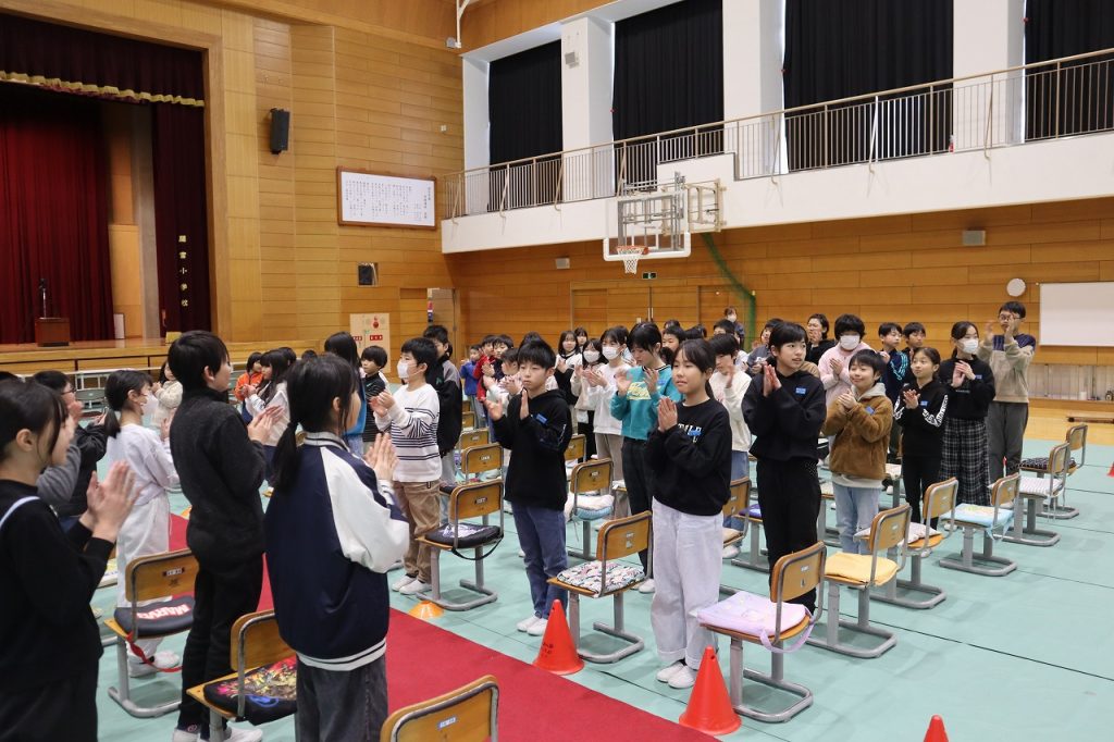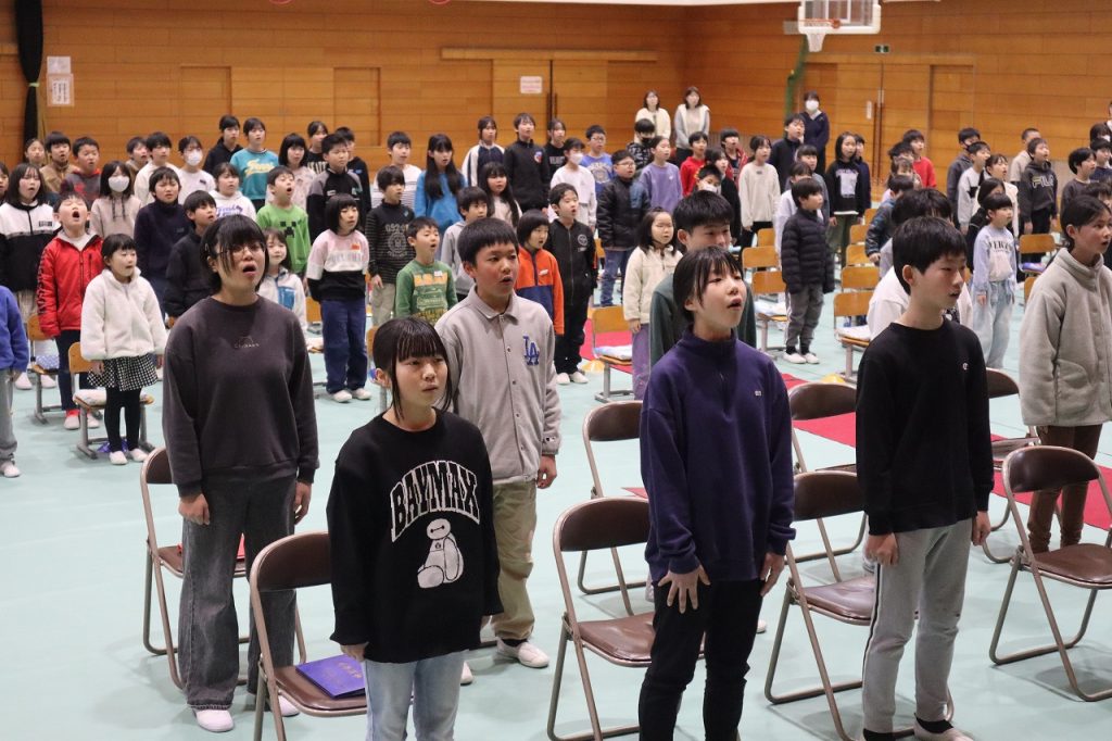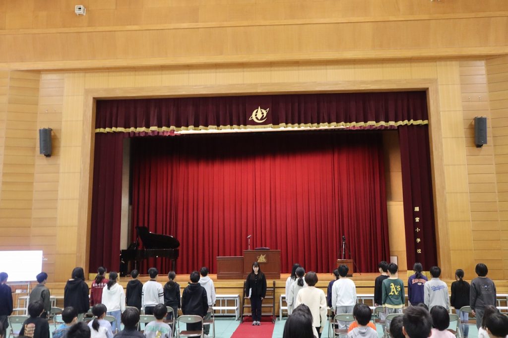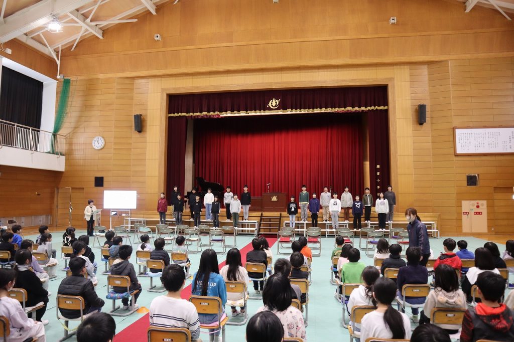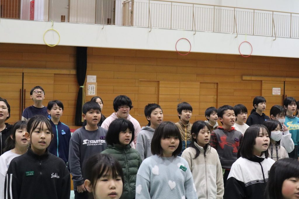 19日(木)の修了証書授与式に向けて動きの確認と歌練習を行いました。日に日に態度・歌声もよくなってきています。6年生はあと3日の登校になります。来年度の児童会執行部が下校集会を進行していました。いろいろなところで来年度に向けてバトンをつないでいます。