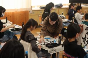前回に引き続き、書道家 華汀先生をゲストティーチャーにお招きし、6年生が修了の書を制作しました。今回は清書の時間で、墨汁で書くのではなく青や銀、金が入ったメタリック墨汁を使いました。納得いくまで書き続け一番良い書に名前 […]