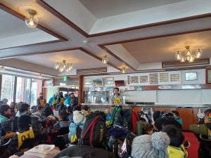 今日は学年毎にユーユータイムの時間を過ごしました。1・2年生は体育館で合同のドッジボールをしていました。3年生はだるまさんが転んだ、4年生は言葉遊び、5年生は外で雪遊び、6年生は人狼ゲームをして楽しく遊んでいました。