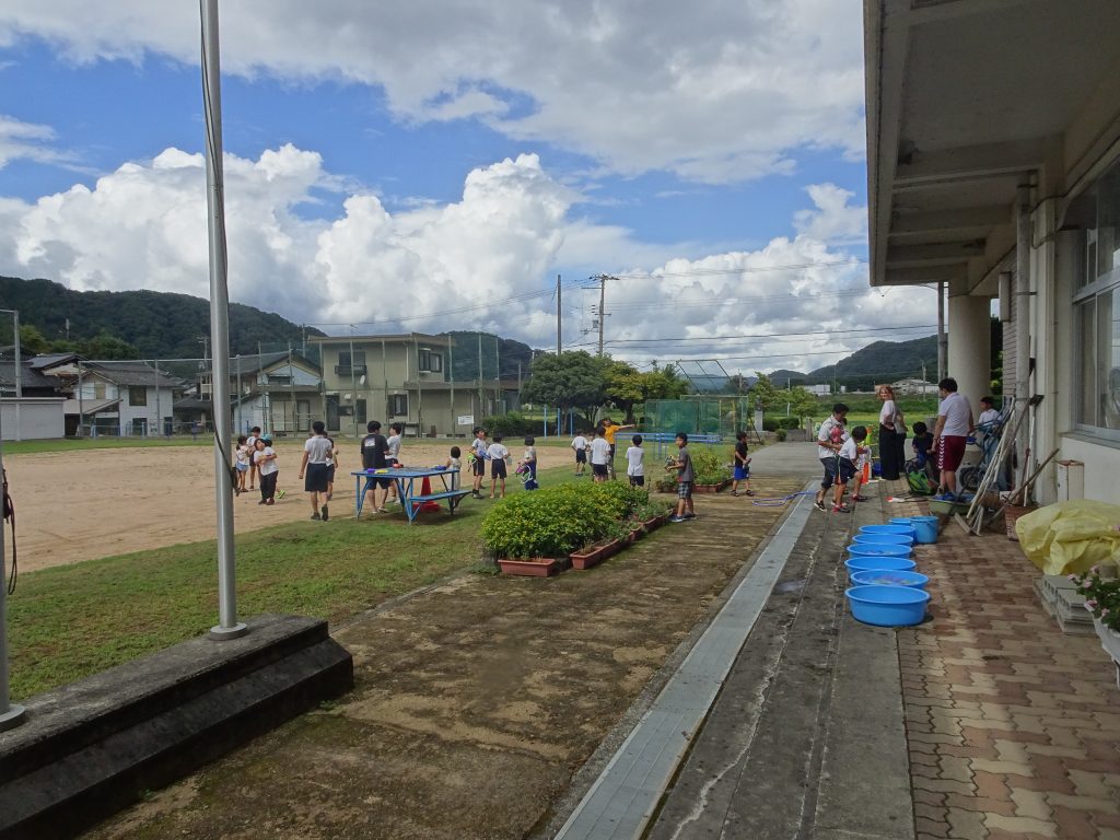 9月11日(木)雨天延期になっていた、そしてみんなが楽しみにしていた、水風船・水鉄砲大会が行われました。放課後、予行演習を何回もしていた、水風船・水鉄砲大会です。先生方も参戦してすごく盛り上がりました。大きな水鉄砲を持っている児童もおり、ビックリしました。