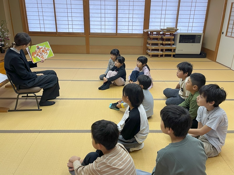 10月21日(水)お話レストランがありました。お話レストランは、先生がみんなに聞いてほしい絵本を選んで、子どもが聞きたい話の所に行ってお話を聞くものです。今年2回目の開催でしたが、みんな読み聞かせが好きなことがよく分りました。
