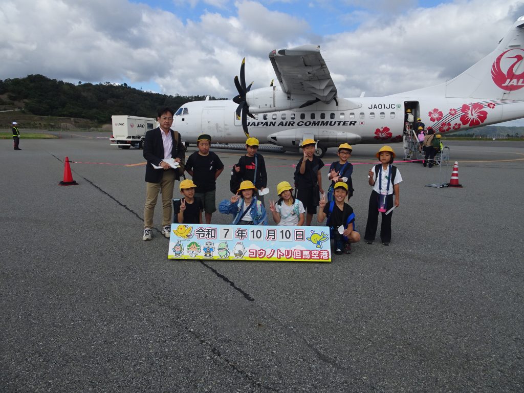 10月10日(金)3,4年生が飛行機遠足に出かけました。飛行機を使って但馬空港から伊丹空港に行き、その後、バスでスカイパークというところに行きました。スカイパークは伊丹空港を裏から眺めることができ、飛行機の発着がすごい近い距離で見ることができました。そこで、昼食を摂りました。その後、伊丹子ども文化科学館にいき、プラネタリウムを見ました。4年生の学習を意識したプラネタリウムですごく分りやすかったし、貸し切りで見ることができて、嬉しい気分になりました。再びバスで伊丹空港まで戻り、今度は、モノレール、阪急電車を乗り継いで、カップヌードルミュージアム大阪池田に行き自分だけのカップヌードルを作りました。盛りだくさんの体験をした飛行機遠足でした。