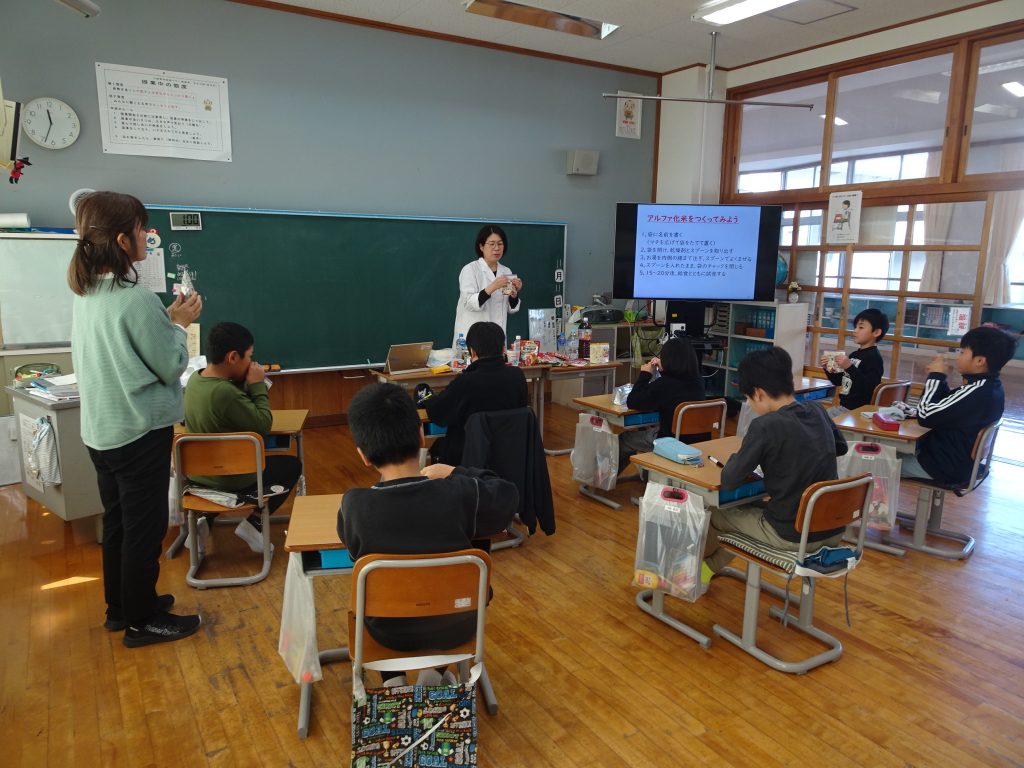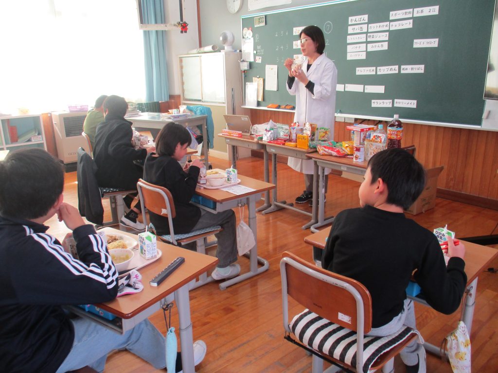 11月11日(火)給食センターから奥山栄養士さんにお越しいただいて、防災、災害対応についてのお話と、アルファ化米の試食を行ないました。「自助、共助、公助」の割合が、7:2:1であることを教えていただき、自助、自分でできることはしていかないといけないことと、そのために防災袋など備えをしておくとことが大切であることを学びました。