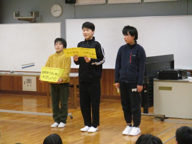 今年初めての児童集会(1月20日) 2026年1月26日 最終更新日時 : 2026年1月26日 syukunamies 1月20日(火)今年初めての児童集会が開かれました。1月がお誕生日の児童の紹介し1年間の目標をそれぞれの人にたずねました。その後、児童会の企画、全校生で遊びたい遊び大募集の説明がありました。 Post Views: 20