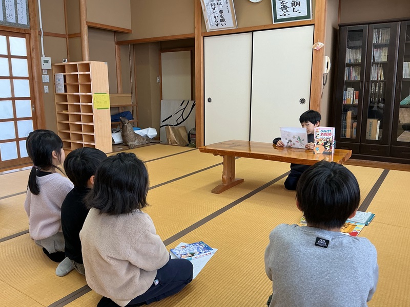 お話レストラン(2月13日) 2026年2月20日 最終更新日時 : 2026年2月20日 syukunamies 2月13日(金)3学期のお話レストランをしました。今回は、ブックトークをしました。自分のおすすめの本をグループごとに紹介しました。友だちの紹介を聞いて読んでみたいと思ってくれたら本好きが増えるかもしれません。 Post Views: 14