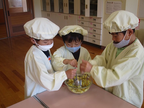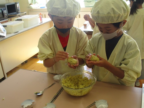 1年生 スイートポテト作り 2025年10月31日 最終更新日時 : 2025年10月31日 takinoyaes 10月30日(木)1年生は、収穫したたくさんのさつまいもを使いスイートポテトを作りました。さつまいもを切るところから始め、頑張ってつぶし、いろんな形のスイートポテトを作りました。最後にチョコレートをトッピングし完成です。 Post Views: 49