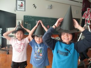10月30日(木)、2年生がハロウィンパーティーをしました。大きな帽子や、ステッキ、おばけなど、楽しそうに作っていました。