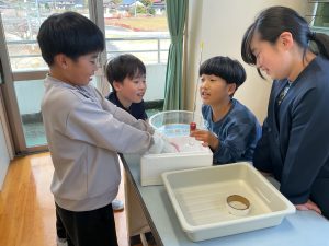 20日(木)の理科の授業では、ものの温度と体積について学習をしました。前回は空気の温度と体積について実験をし、今回は水を温めたり、冷やしたりして、体積が変化するかどうかの実験をしました。
