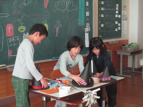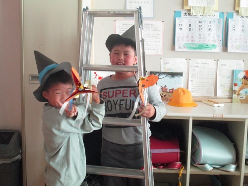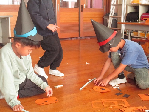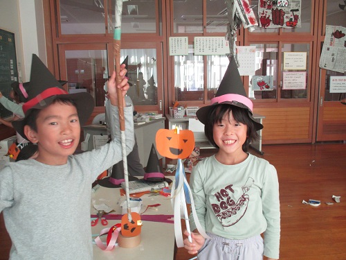 2年生 ハロウィンパーティー 2025年11月4日 最終更新日時 : 2025年11月4日 takinoyaes 10月30日(木)、2年生がハロウィンパーティーをしました。大きな帽子や、ステッキ、おばけなど、楽しそうに作っていました。 Post Views: 15