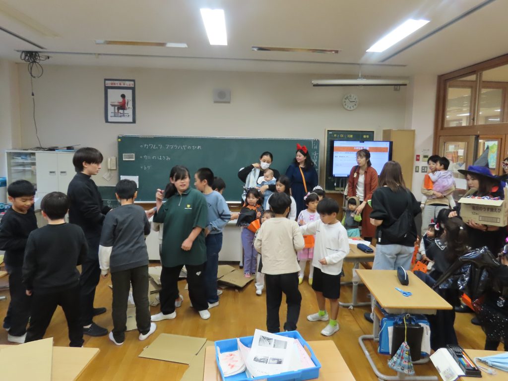E-park(ハロウィン) 2025年11月5日 最終更新日時 : 2025年11月5日 takinoyaes 31日(金)のE-parkはハロウィンパーティーを行いました。かわいらしく仮装をした就学前の子どもたちが、「Trick or Treat!」を合い言葉に各教室を回りました。 Post Views: 40