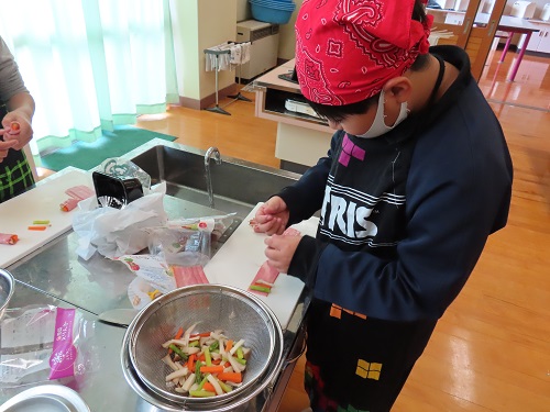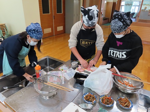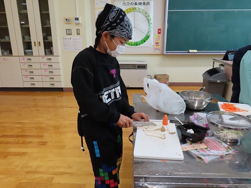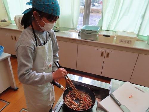 6年生調理実習 2025年11月21日 最終更新日時 : 2025年11月21日 takinoyaes 21日(金)に6年生が調理自習を行い、きんぴらごぼうと、野菜のベーコン巻きを作りました。切った野菜を炒めたり茹でたりし、とても美味しそうに仕上がりました。 Post Views: 52