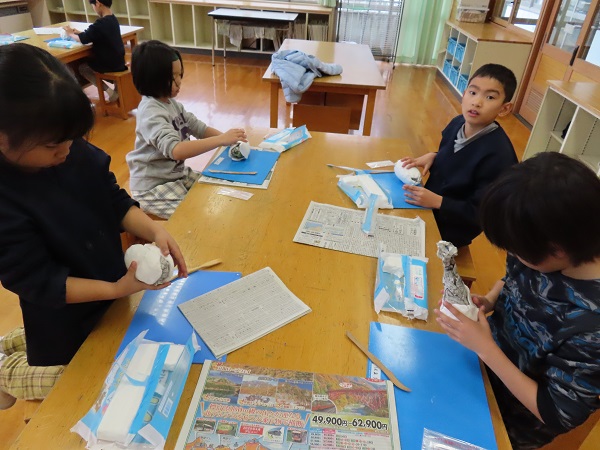 1・2年生図工 2026年1月21日 最終更新日時 : 2026年1月21日 takinoyaes 粘土と新聞紙を使った作品作りをしました。新聞紙で土台を作り、その周りに粘土を貼り付けていき、生き物やロケットなど、思い思いの作品を制作しました。 Post Views: 51