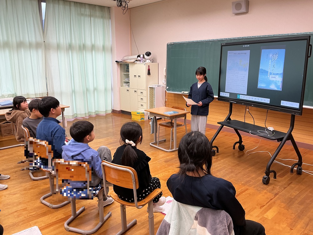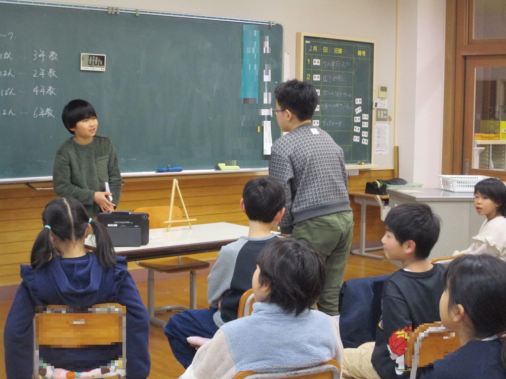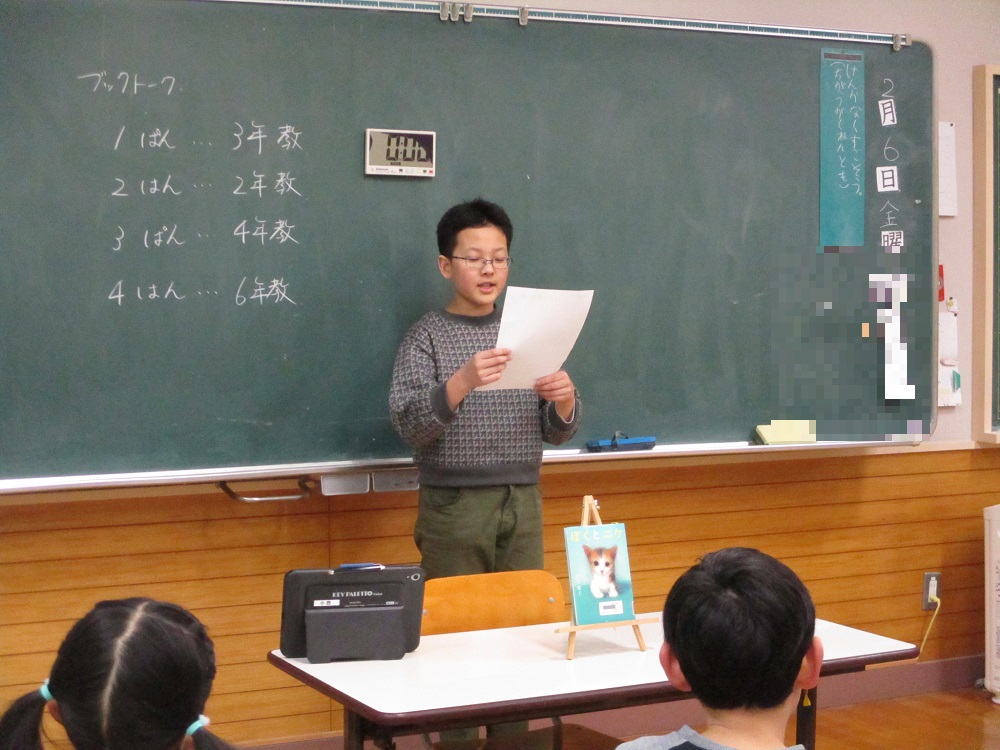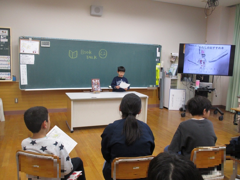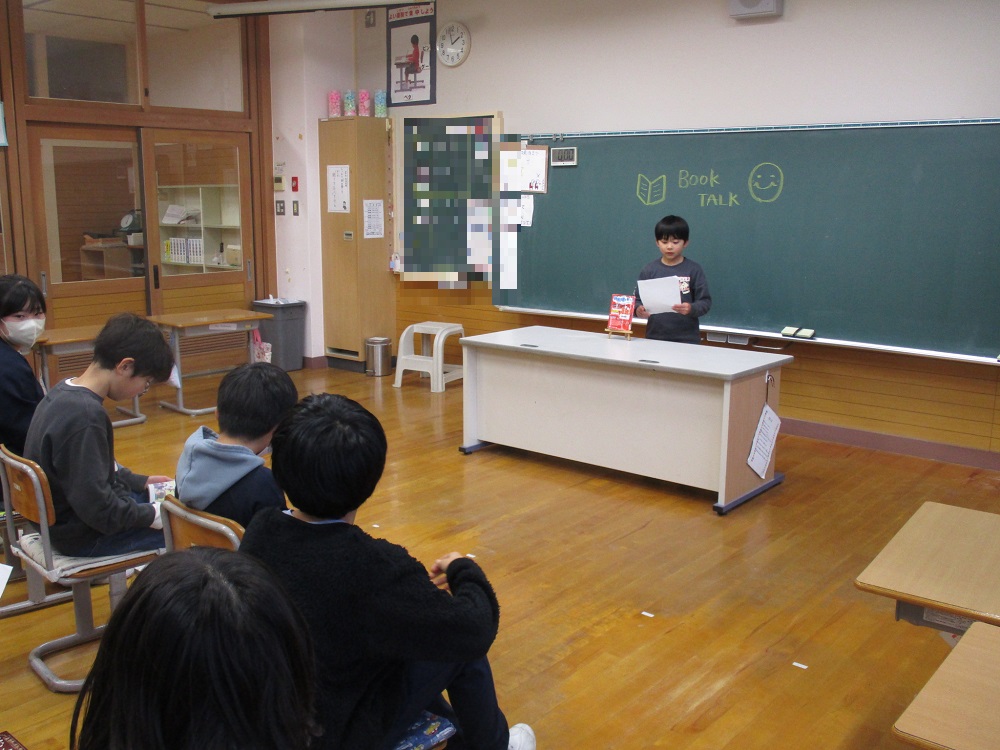 ブックトーク 2026年2月9日 最終更新日時 : 2026年2月9日 takinoyaes 2月6日にブックトークを行いました。縦割り班に分かれて1人ずつ本の紹介をしていきます。他学年と人と本の紹介をしたり、質問をしたりすることで、様々な本への興味関心が沸いてきました。 Post Views: 53
