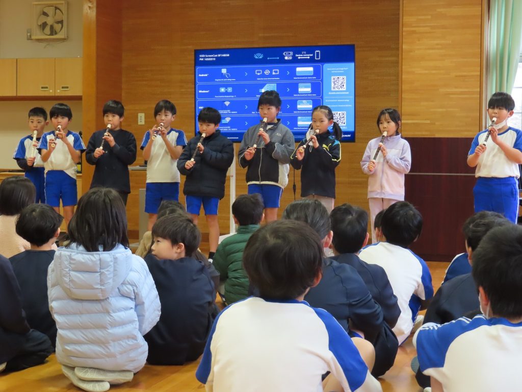全校音楽 2026年2月20日 最終更新日時 : 2026年2月21日 takinoyaes 今月の全校音楽では、今月歌である「ありがとうの花」を合唱しました。また3年生がリコーダー演奏を発表しました。4月から始まったリコーダー学習での成果を発揮し、すてきな曲を披露してくれました。 Post Views: 37