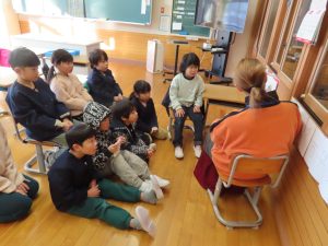 2月4日は読み聞かせボランティアさんによるお話広場(低学年)がありました。節分にちなんだお話など様々な本を読んでいただきました。思わず「えぇー!」と身を乗り出すような場面もあり、とても楽しい時間となりました。
