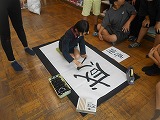 近藤研秀先生をお招きして、書写指導をしていただきました。最初に、書く用紙の中心と体の中心を揃えること、手首を動かすのではなく、肘から動かすこと、そして、大切なのは楽しんで書くことなどをお話しくださいました。一人一人、半紙に書いた書を研秀先生に見ていただき、授業の終わりには、大きな用紙に、一画ずつ学級全員で書いた書を制作しました。1月の書き初め会にも、研秀先生をお招きする予定です。
